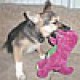 Now as I said, it was very sad for me to not have JD get a crack at the purple guy, but I must admit there is something special about him. He started to grow on us. Having traveled all over North America he has stayed with some of the coolest Tri-Pawds on the planet and so far none of them have done him in. Maya and Serena have managed to destroy every single stuffed toy I have given them since they came to live with me. Even the Tuff-toys . (They have toughness ratings from 1-10 . We had an 8 here and it was made of some Kevlar/bullet proof fabric and they still managed to have my living room carpet look like a Winter Wonderland of fluff and shredded material.)